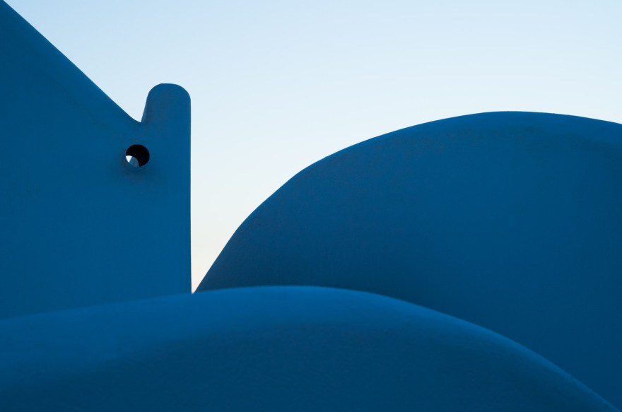 le curve dei tetti bianchi s’intersecano come schizzi di Picasso e nell’ora blu si tingono di azzurro…