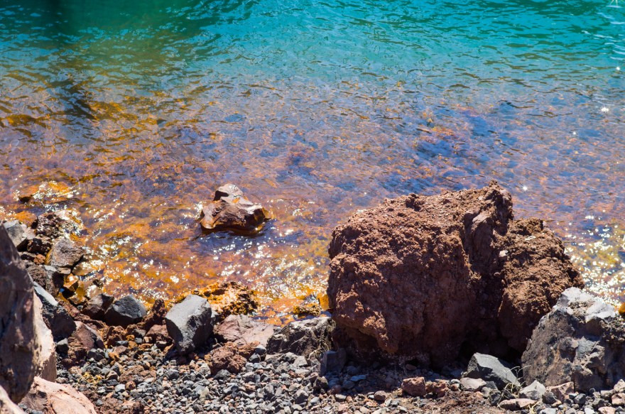 Quando riusciamo a toccare il fondo con i piedi sembra di camminare nella marmellata, una sorta di fanghiglia melmosa formatasi dalla grande presenza di ferro che rende l’acqua di un colore tra l’arancio scuro e il Terra di Siena … la temperatura dell’acqua era perfino inferiore di quella della spiaggia di Monolithos…. Se avete bimbi piccoli , uno dei genitori deve rimanere sulla barca e non c’è il tempo per fare un cambio con chi ha deciso di tuffarsi, la barca riparte dopo 15/20 minuti….Voto 5